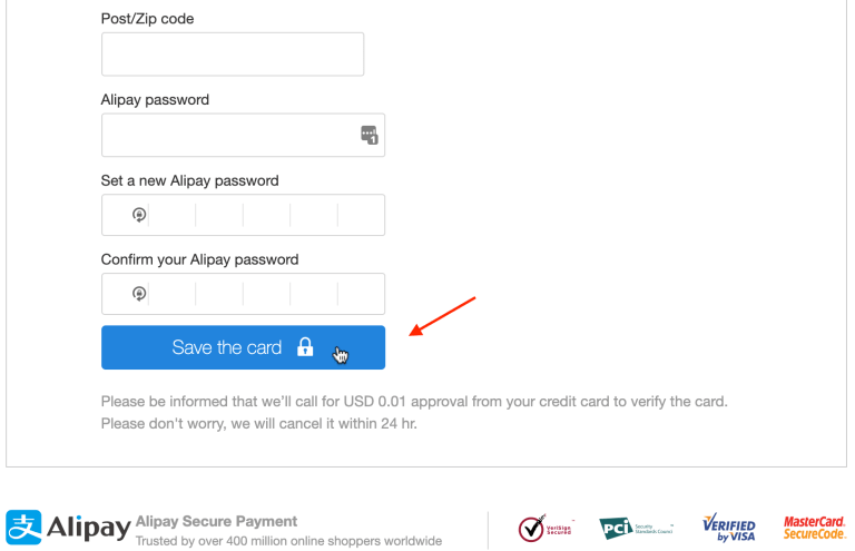 5. When adding credit cards to AliExpress using AliPay, enter your credit card information in the form.